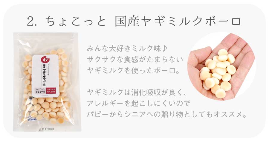 ・当店オリジナルおもちゃ!キュッキュと鳴る楽しい「デコボール」でストレス解消! ・安心な国産品!鶏ササミを牛肉で巻いたリッチな「ササミ巻きガム」と、香ばしい「ヤギミルクボーロ」で貰って嬉しいおやつ入り。